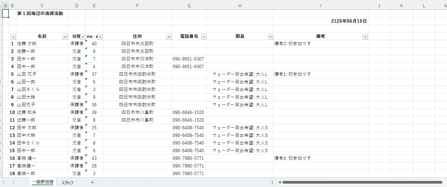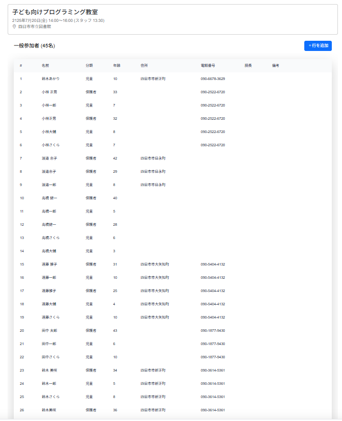 - 保険適用のため、名簿には住所・電話番号・年齢が必要で、全ての行を埋めるのに膨大な時間がかかっていた