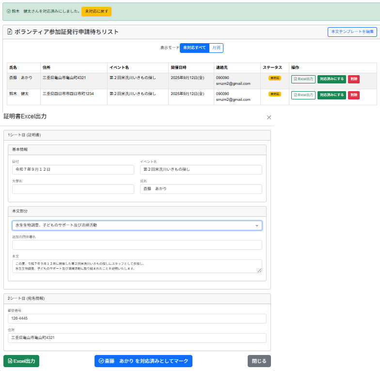 - ボランティア証明書の集計・発行作業が完全に手作業で、膨大な時間がかかっていた