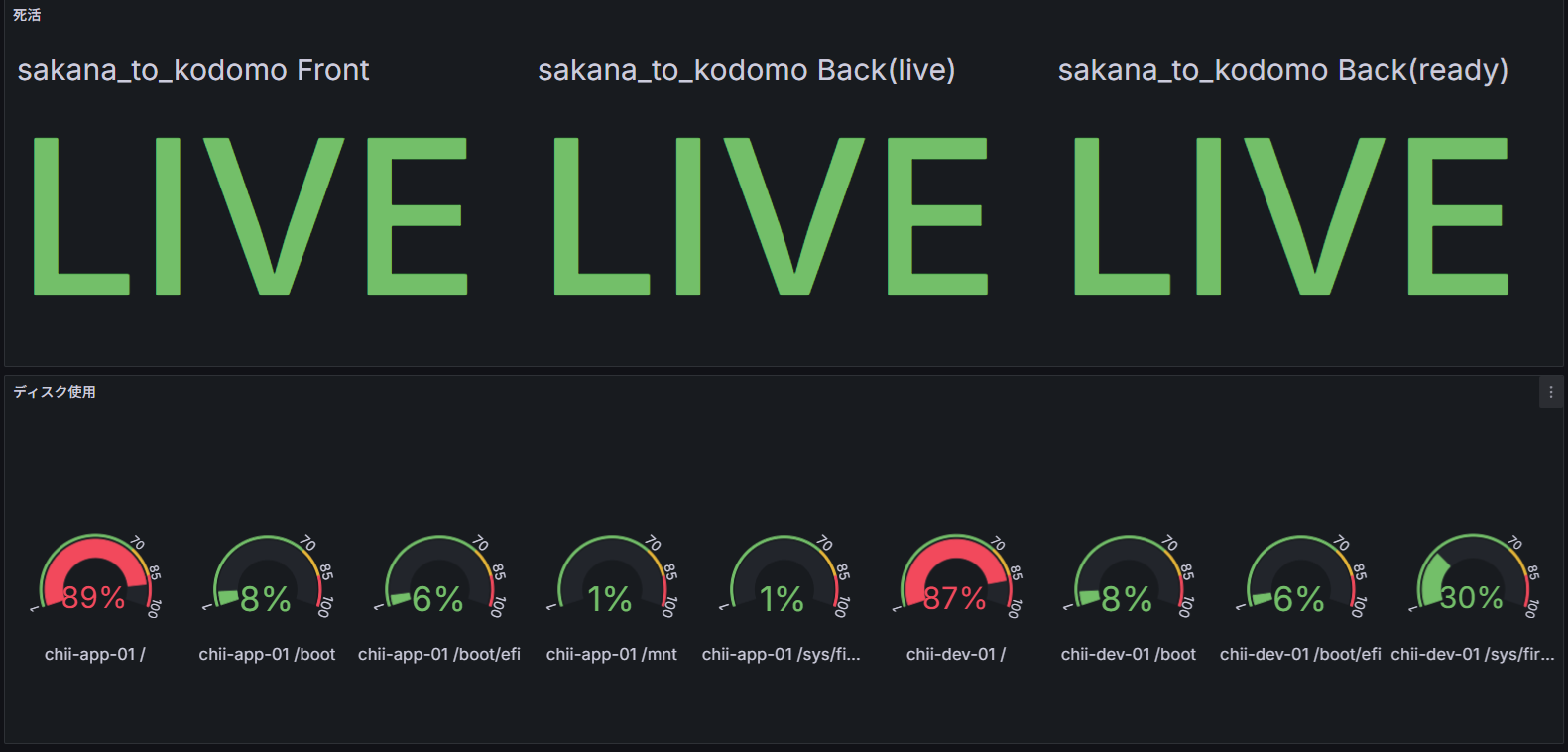 システムがダウンしていないか、データベースは稼働しているか、容量不足はないかなどをGrafana-Lokiを使って常に自動監視。